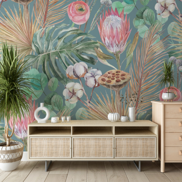 - BLUMEN, BOHO, FLUR, Fototapeten, SCHLAFZIMMER, TROPISCHE BLÄTTER, WOHNZIMMER, Zimmer
