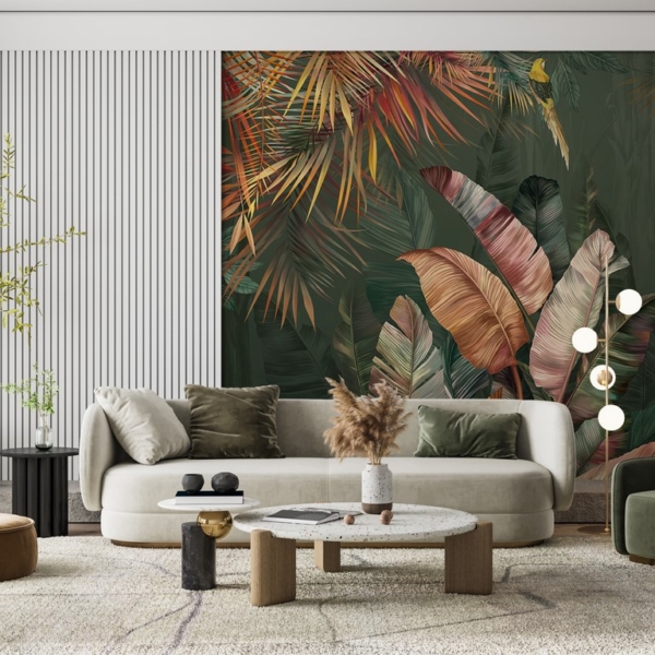 - 3D, FLUR, Fototapeten, KÜCHE, TROPISCHE BLÄTTER, WOHNZIMMER, Zimmer