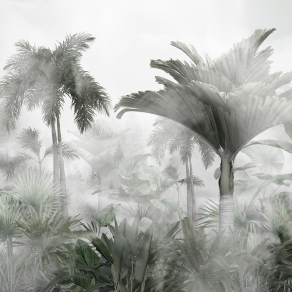 - Produktnummer: 12088934537 Eine Fototapete, die einen exotischen Wald zeigt, der in einen magischen, geheimnisvollen Nebel gehüllt ist. Im Vordergrund sind Bananenblätter zu sehen, und es gibt auch Bäume, die an Palmen erinnern. Das Ganze wurde durch viel kleinere Sträucher ergänzt. Die Wandmalerei ist in gedeckten, gedämpften Farben gehalten. Es dominieren verschiedene Grautöne und verblasstes Grün. Die rote Palmfrucht fällt ins…