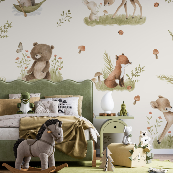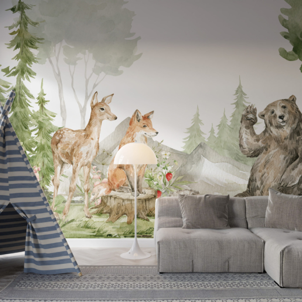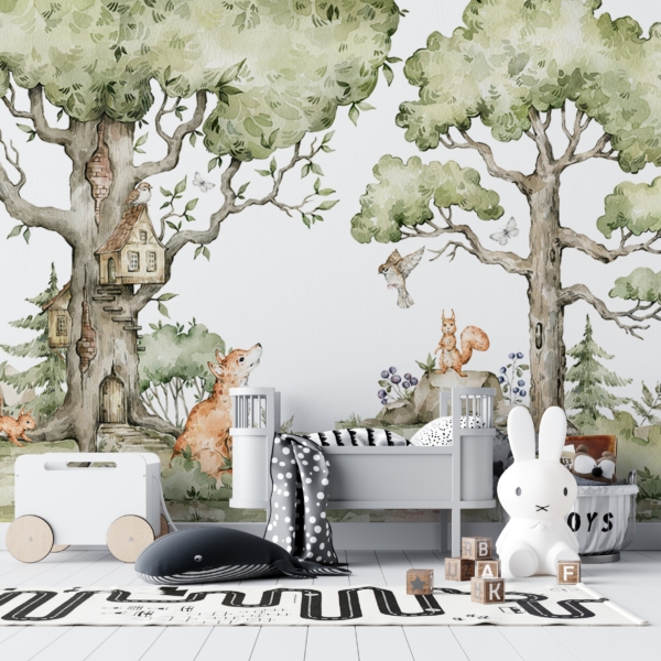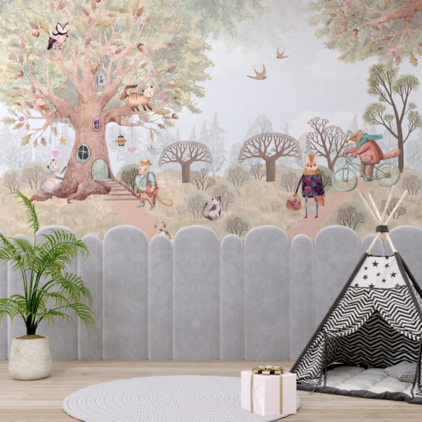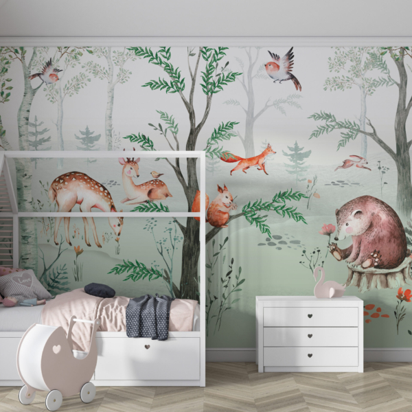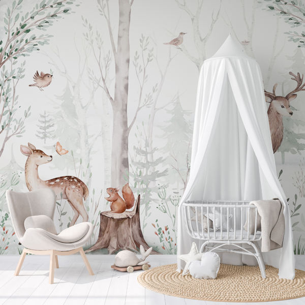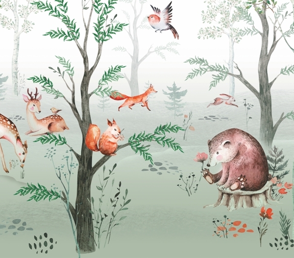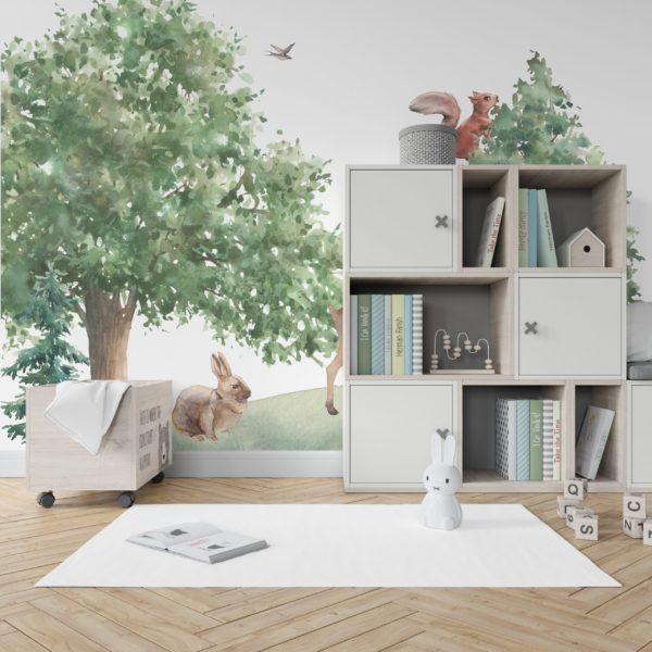 - Produktnummer: 1456877518 Eine äußerst charmante Fototapete mit einem Waldmotiv ist die perfekte Wahl für jedes Kinderzimmer. Die verwendeten Farben sind dezent und werden von Braun-, Beige- und Grüntönen dominiert, wodurch sich das Produkt für jede Einrichtung eignet. Die Tiere auf dem Wandgemälde sind ein echter Hingucker und sprechen Kinder jeden Alters an. Es ist bemerkenswert, dass trotz der vielen Elemente,…