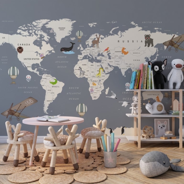 - Fototapeten, JUNGE, Kinder, KINDER, MÄDCHEN, WELTKARTE, Zimmer