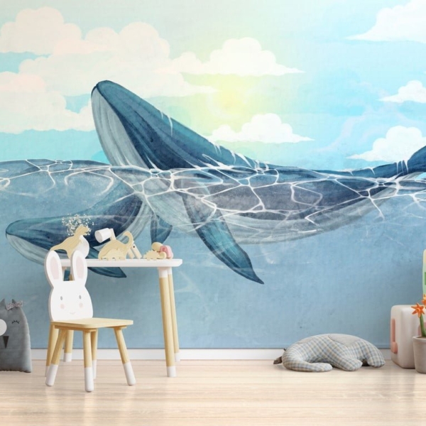 - Produktnummer: 12123019083 Ein Wandbild, das speziell für Kinder entworfen wurde. Es stellt Wassertiere dar, die in die Tiefe abgetaucht sind. Ihr Hintergrund ist ein heiterer Himmel voller weißer und blauer Wolken, hinter denen die Sonne schüchtern hervorschaut. Das Ganze ist in verschiedenen Blautönen gehalten, denen ein Hauch von Weiß hinzugefügt wurde. Die Fototapete ist - trotz ihrer dominanten Farbe -…