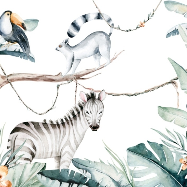 - Produktnummer: 1437018271 Ein Wandbild, ideal für alle Liebhaber tropischer Einrichtungselemente. zeigt exotische Tiere, angeführt von einem Zebra, die von tropischer Vegetation umgeben sind. Es wurde so gestaltet, dass es erfolgreich in einem Wohnzimmer, Schlafzimmer oder Flur eingesetzt werden kann, aber nichts spricht dagegen, es auch zur Dekoration eines Kinderzimmers zu verwenden. Die Farben wurden abgeschwächt, so dass sie weniger intensiv…