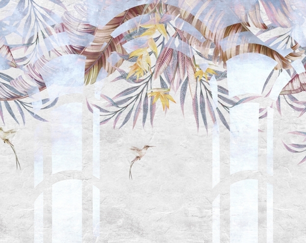 - 3D, FRUNZE TROPICALE, PENTRU BIROU, Pentru cameră, PENTRU HOL, PENTRU SUFRAGERIE, Picturi murale
