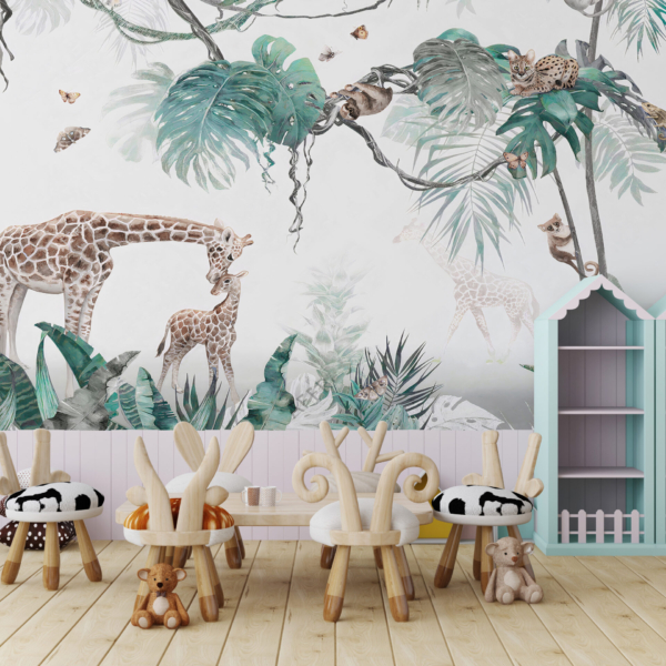 - ANIMALE, BĂIAT, FATĂ, FRUNZE TROPICALE, Pentru cameră, Pentru copii, PENTRU COPII, Picturi murale