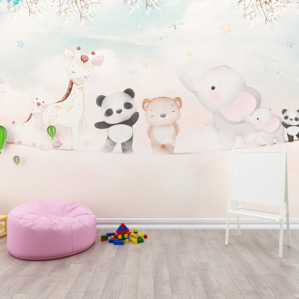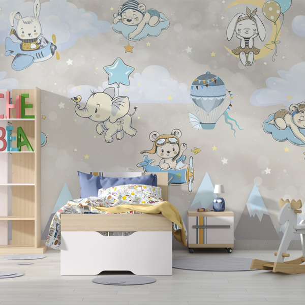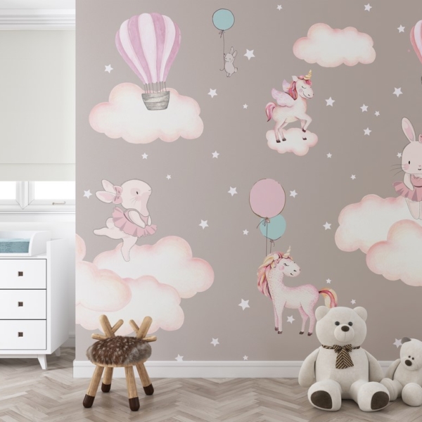 Micuțul tău este încântat de unicorni? Dacă este așa, consultați imaginile noastre de fundal pentru fete care înfățișează aceste creaturi maiestuoase însoțite de curcubee sau flori. Sau preferă iepurașii drăguți? Nicio problemă – în gama noastră veți găsi o gamă largă de tapet cu aceste animale simpatice. Veți găsi, de asemenea, picturi murale de perete cu ursuleți de pluș, munți, balene, păduri, flori și alte modele care sunt perfecte pentru camera unui copil.
