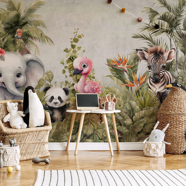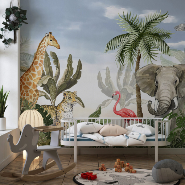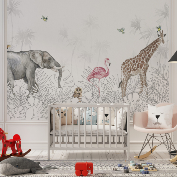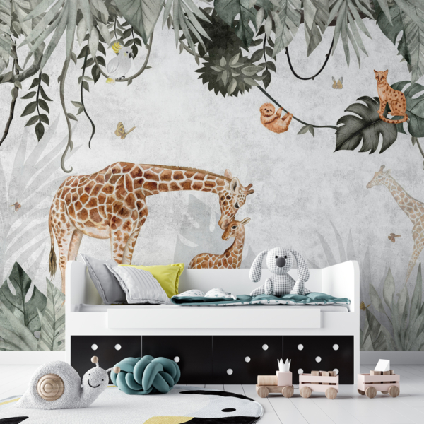 - Numărul produsului: 12120539298 O pictură murală extrem de distractivă și pozitivă care ar fi perfectă pentru camera oricărui copil. Perfect atât pentru fete, cât și pentru băieți. Acesta prezintă animale exotice în habitatul lor natural - jungla. Acesta prezintă o girafă, o zebră, o maimuță fericită și flamingo pozitive. Ceea ce face ca această pictură murală să iasă în evidență…