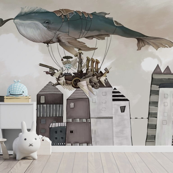 - Numărul produsului: 12129907740 O pictură murală care a fost concepută cu gândul la cei mici. Punctul central este o balenă zburătoare cu o țeavă amuzantă care domină orașul. Clădiri cu o formă simplă, culori discrete - toate acestea asigură că pictura murală nu va suprasolicita sistemul cognitiv al copilului. În schimb, va aduce o atmosferă neobișnuită în camera oricărui copil,…
