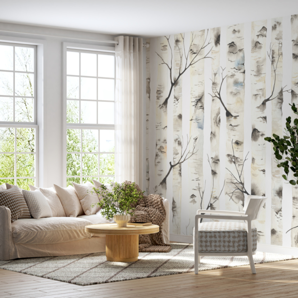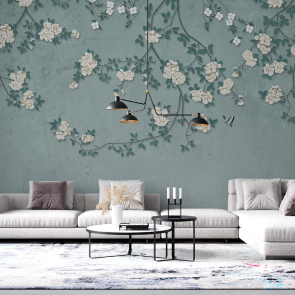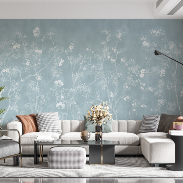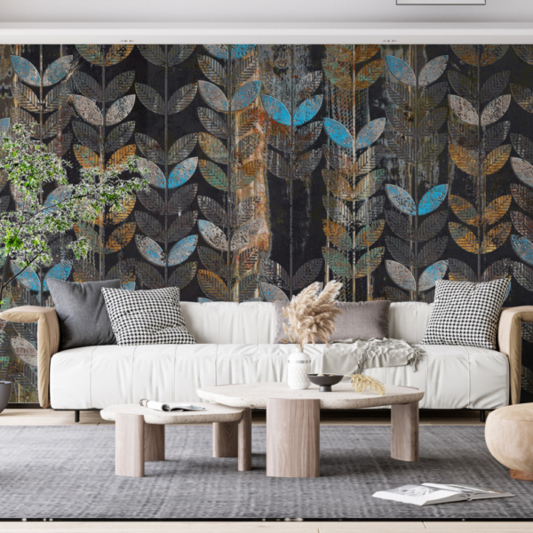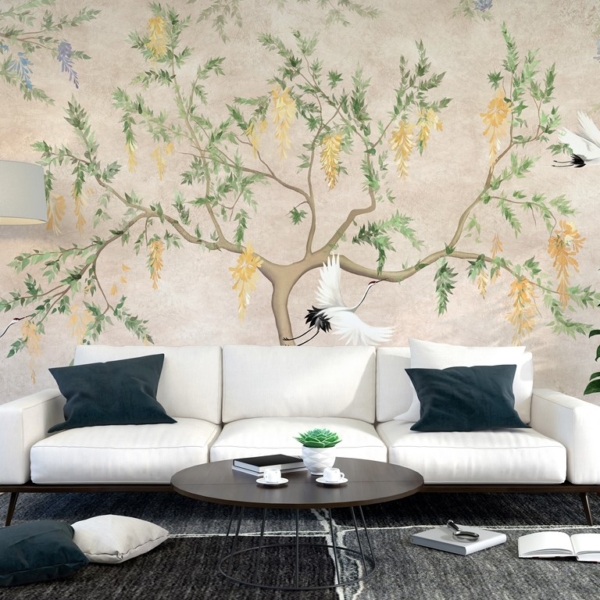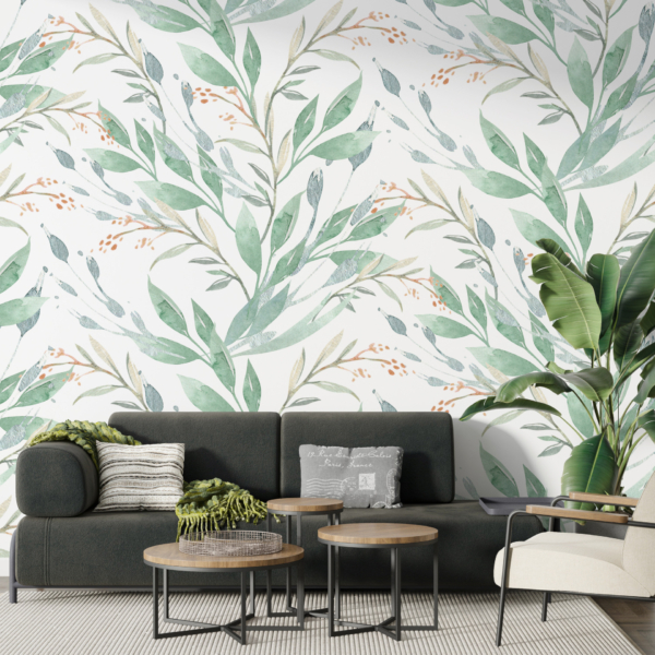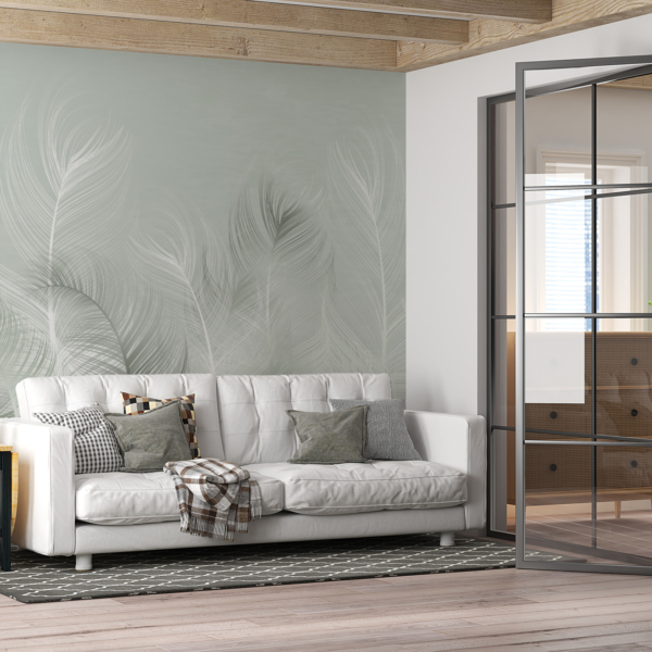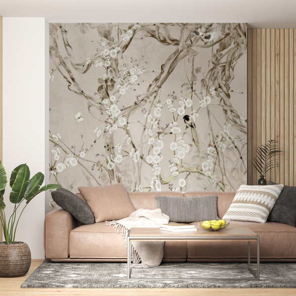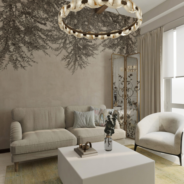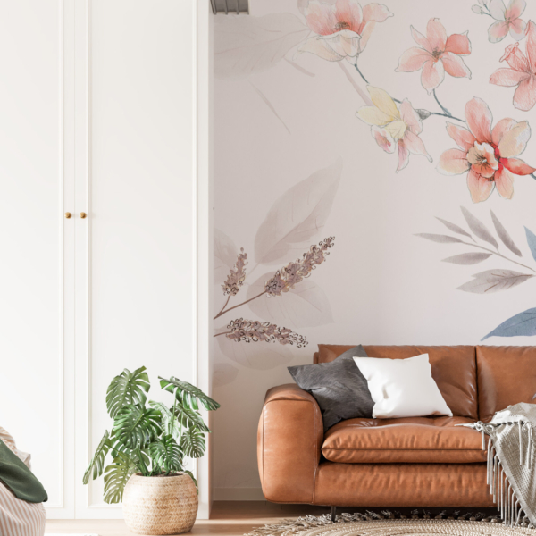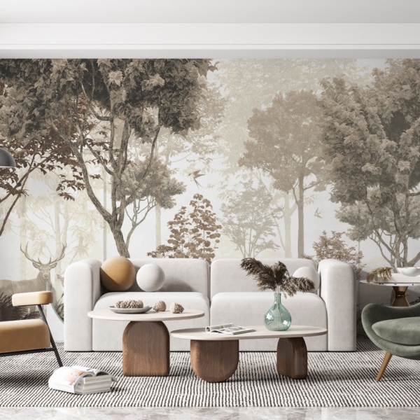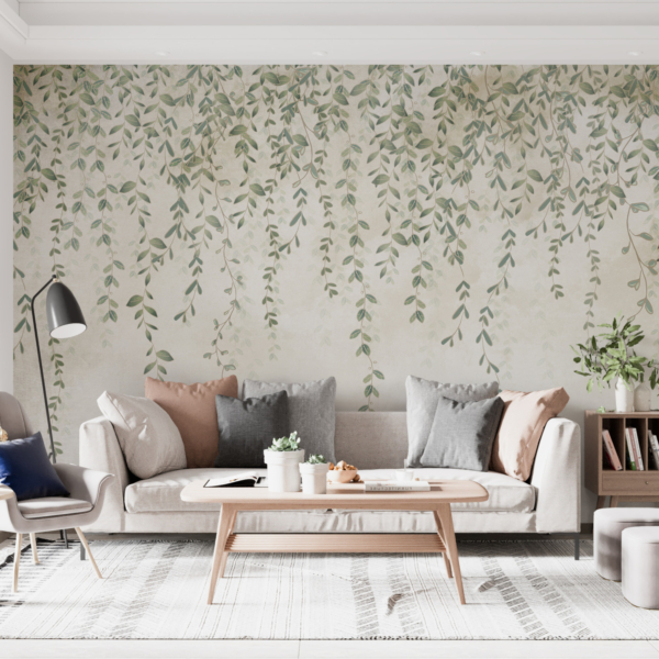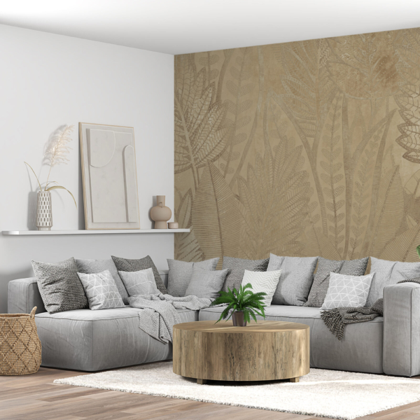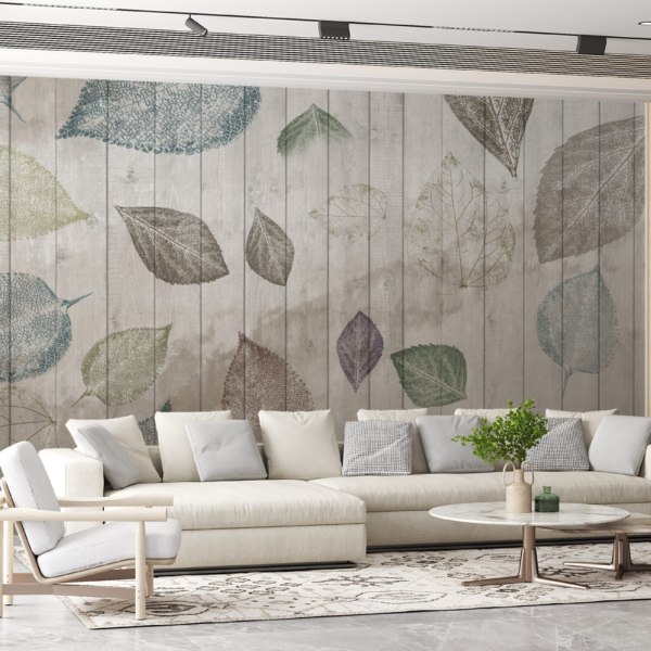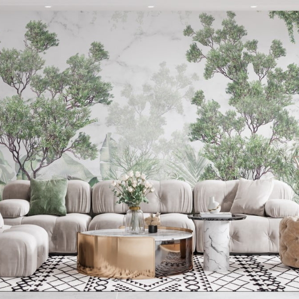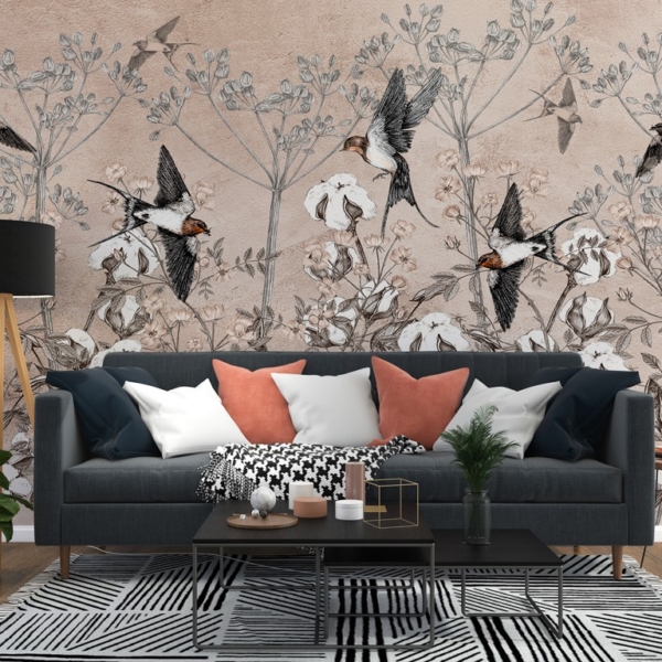 Motive delicate de frunze, flori și animale – un accent de bun gust pentru o cameră de zi minimalistă