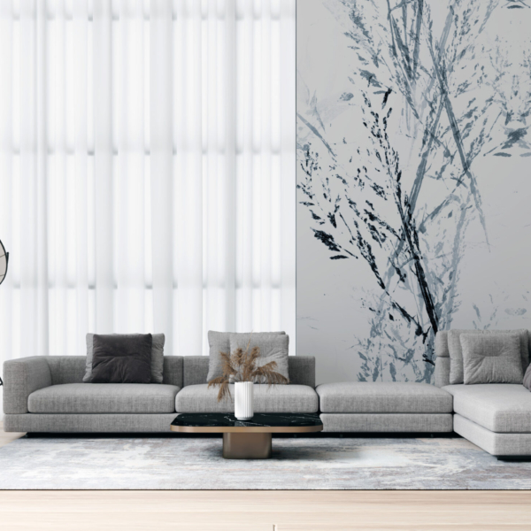 Motive delicate de frunze, flori și animale – un accent de bun gust pentru o cameră de zi minimalistă