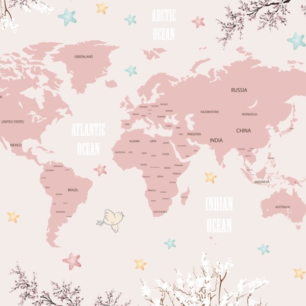 - Dla dzieci, DO DZIECKA, Do pokoju, Dziecięcy, DZIEWCZYNKA, Fototapety, Kolory, MAPA ŚWIATA, Odcienie Różowego, Styl