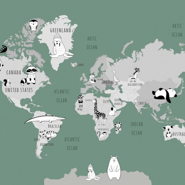 - CHŁOPIEC, Dla dzieci, DO BIURA, DO DZIECKA, Do pokoju, Dziecięcy, DZIEWCZYNKA, Fototapety, Kolory, MAPA ŚWIATA, Odcienie Szarości, Styl, ZWIERZĘTA