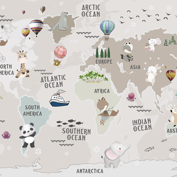 - CHŁOPIEC, Dla dzieci, DO DZIECKA, Do pokoju, Dziecięcy, DZIEWCZYNKA, Fototapety, Kolory, MAPA ŚWIATA, Odcienie Brązu i Beżu, Styl, ZWIERZĘTA