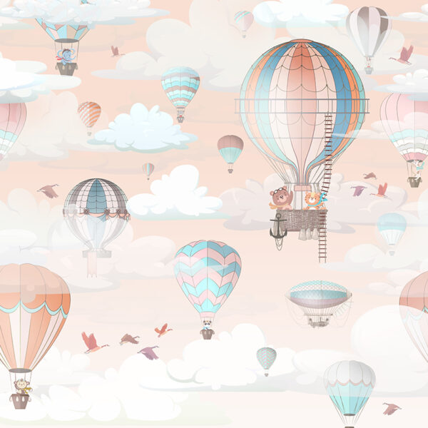 - Dla dzieci, DO DZIECKA, Do pokoju, Dziecięcy, DZIEWCZYNKA, Fototapety, Kolory, NIEBO, Odcienie Różowego, Odcienie Szarości, Styl, ZWIERZĘTA