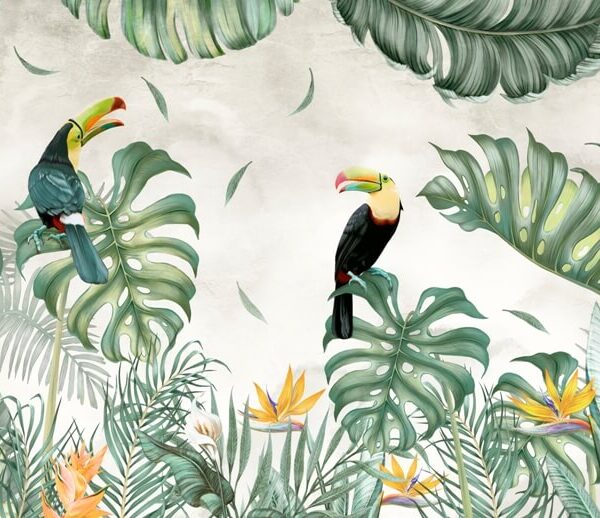 - DO BIURA, Do pokoju, DO PRZEDPOKOJU, DO SALONU, DO SYPIALNI, Fototapety, Kolory, KWIATY, Odcienie Zieleni, Styl, TROPIKALNE LIŚCIE, Tropikalny, ZWIERZĘTA
