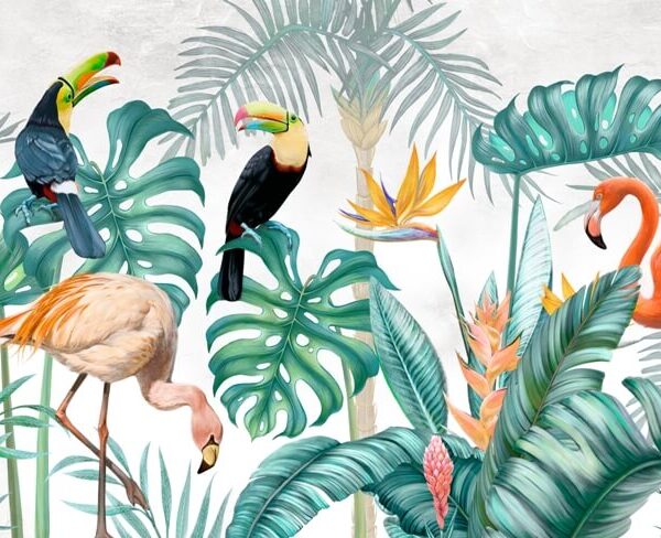 - DO BIURA, DO KUCHNI, Do pokoju, DO PRZEDPOKOJU, DO SALONU, DO SYPIALNI, DO ŁAZIENKI, Fototapety, Kolory, KWIATY, NATURA, Odcienie Różowego, Odcienie Zieleni, Styl, TROPIKALNE LIŚCIE, Tropikalny, ZWIERZĘTA