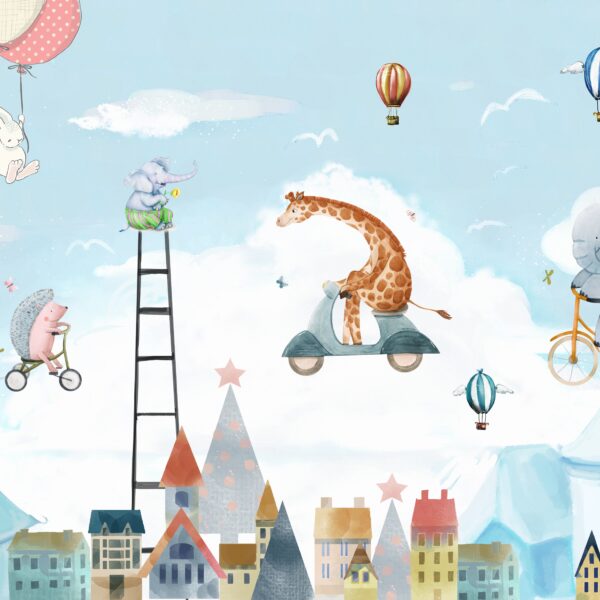 - Dla dzieci, DO DZIECKA, Do pokoju, Dziecięcy, DZIEWCZYNKA, Fototapety, Kolory, NIEBO, Odcienie Szarości, Styl, ZWIERZĘTA