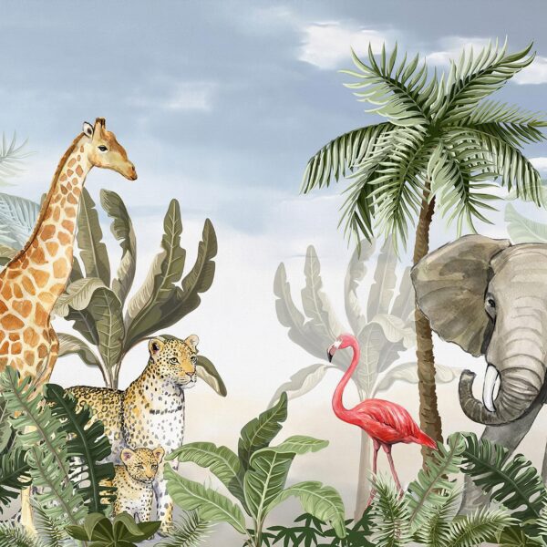 - CHŁOPIEC, Dla dzieci, DO DZIECKA, Do pokoju, Dziecięcy, DZIEWCZYNKA, Fototapety, Kolory, NATURA, NIEBO, Odcienie Brązu i Beżu, Styl, TROPIKALNE LIŚCIE, ZWIERZĘTA