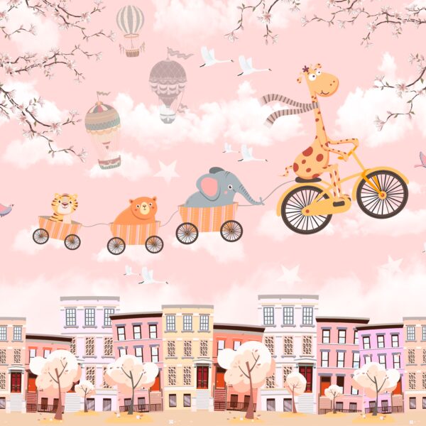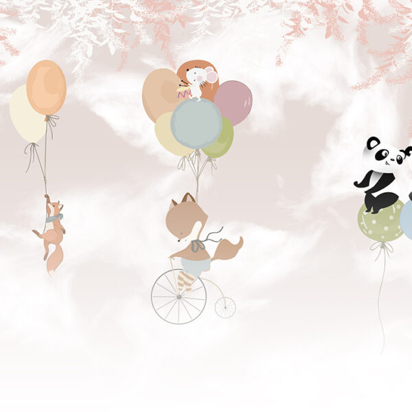 - Dla dzieci, DO DZIECKA, Do pokoju, Dziecięcy, DZIEWCZYNKA, Fototapety, Kolory, NIEBO, Odcienie Brązu i Beżu, Odcienie Różowego, Styl, ZWIERZĘTA