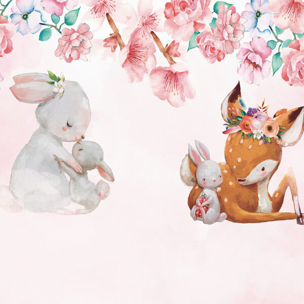 - Dla dzieci, DO DZIECKA, Do pokoju, Dziecięcy, DZIEWCZYNKA, Fototapety, Kolory, NATURA, Odcienie Różowego, Styl, ZWIERZĘTA
