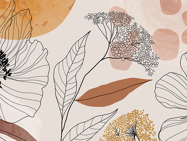 - BOHO, Do pokoju, DO SYPIALNI, DO ŁAZIENKI, Fototapety, Kolory, KWIATY, Odcienie Brązu i Beżu, Odcienie Pomarańczu, Styl, Vintage & Retro
