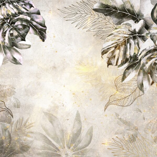 - Do pokoju, DO PRZEDPOKOJU, DO SALONU, Fototapety, Kolory, Minimalistyczny, Odcienie Szarości, Odcienie Złota i Srebra, Styl, TROPIKALNE LIŚCIE