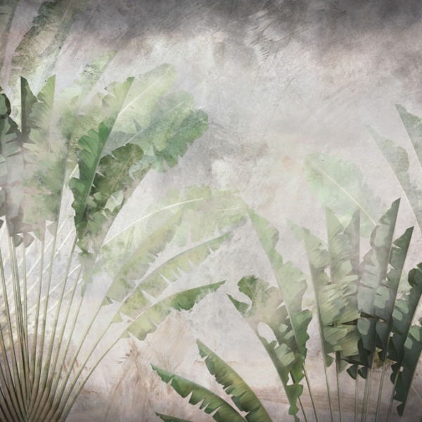 - DO BIURA, Do pokoju, DO PRZEDPOKOJU, DO SALONU, Fototapety, Kolory, Odcienie Szarości, Odcienie Zieleni, Styl, TROPIKALNE LIŚCIE, Tropikalny