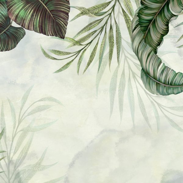 - Do pokoju, DO SALONU, DO SYPIALNI, Fototapety, Kolory, Odcienie Szarości, Odcienie Zieleni, Styl, TROPIKALNE LIŚCIE, Tropikalny