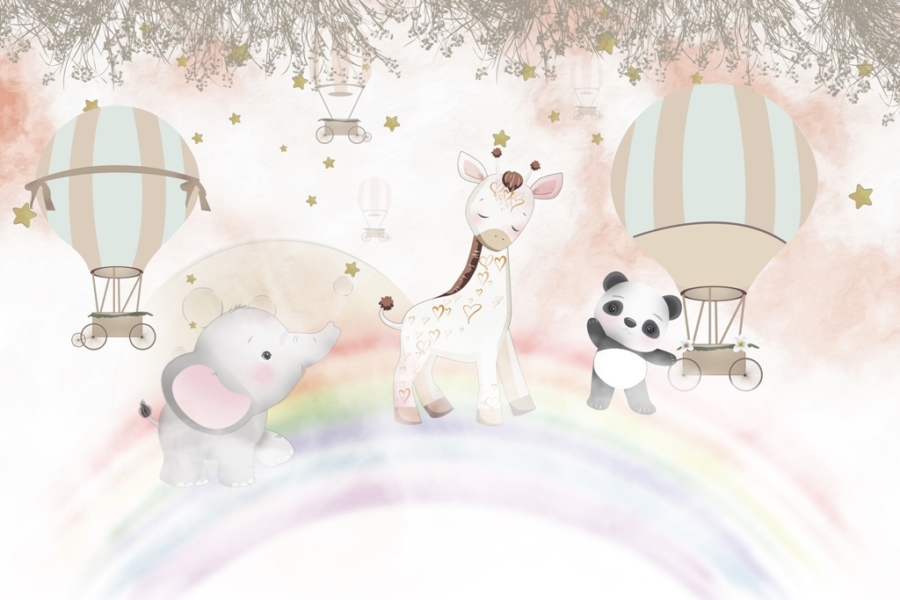 Transportă-te într-o lume magică, plină de culoare și farmec, cu această pictură murală fantastică „Animale pe curcubeu”. Ideală pentru camera copilului, grădiniță sau zona de joacă, va oferi o atmosferă unică și îi va încânta atât pe cei mici, cât și pe adulți.