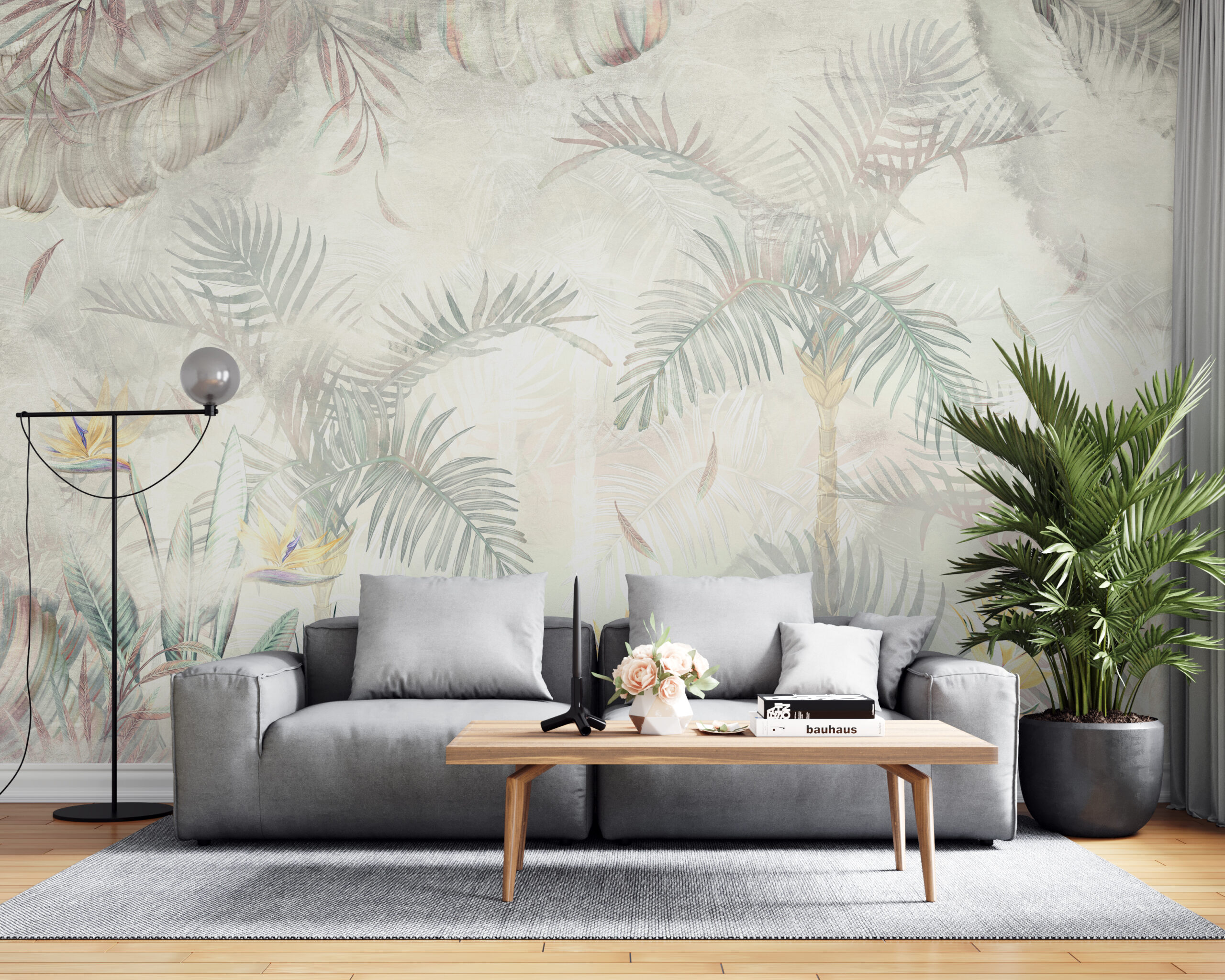 Denna bleka natur väggmålning är det perfekta sättet att skapa en mysig atmosfär i alla rum. Mjuka, dämpade färger och subtila mönster ger inredningen karaktär och uppmuntrar till avkoppling.