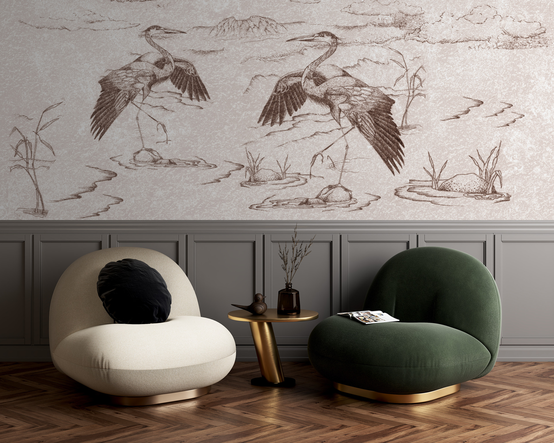 Cocorii sunt o parte importantă a culturii și artei japoneze, simbolizând longevitatea, renașterea și prosperitatea. Cu această pictură murală de perete veți putea aduce o notă de farmec oriental și energie pozitivă în casa dumneavoastră.
