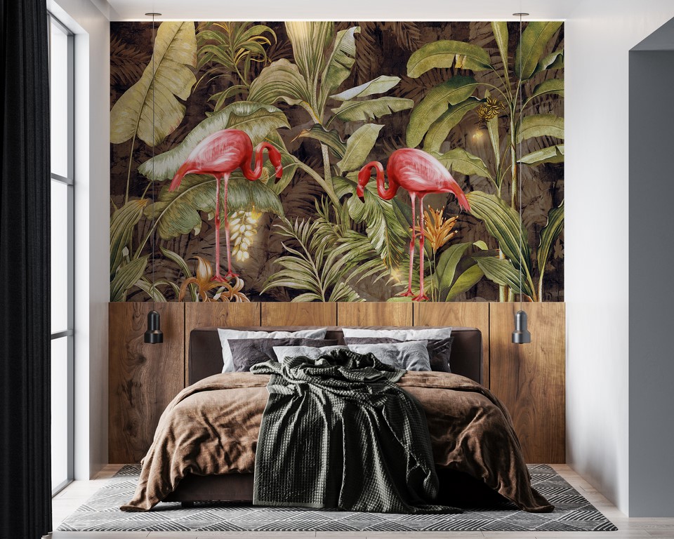 Letar du efter en originell dekoration för din inredning? Denna väggmålning med ett motiv av röda fåglar i grönska kommer att vara ett utmärkt val!