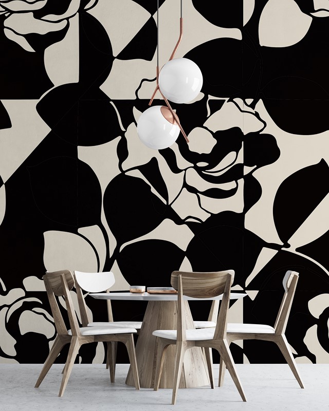 to wyjątkowy motyw dekoracyjny łączący nutę ekspresji artystycznej z naturalnym pięknem kwiatów. Idealny do wnętrz, które potrzebują akcentu subtelnej elegancji i artystycznego zacięcia.