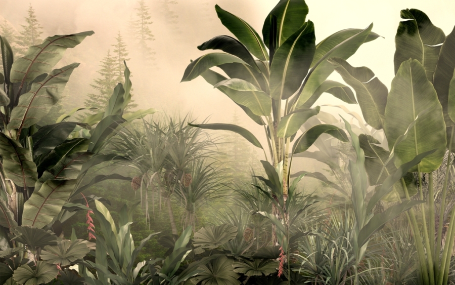 Leiskite sau atsipalaiduoti egzotiškos gamtos apsuptyje – užsisakykite sienų freską „Aušra džiunglėse” dabar ir susikurkite savo ramybės oazę.