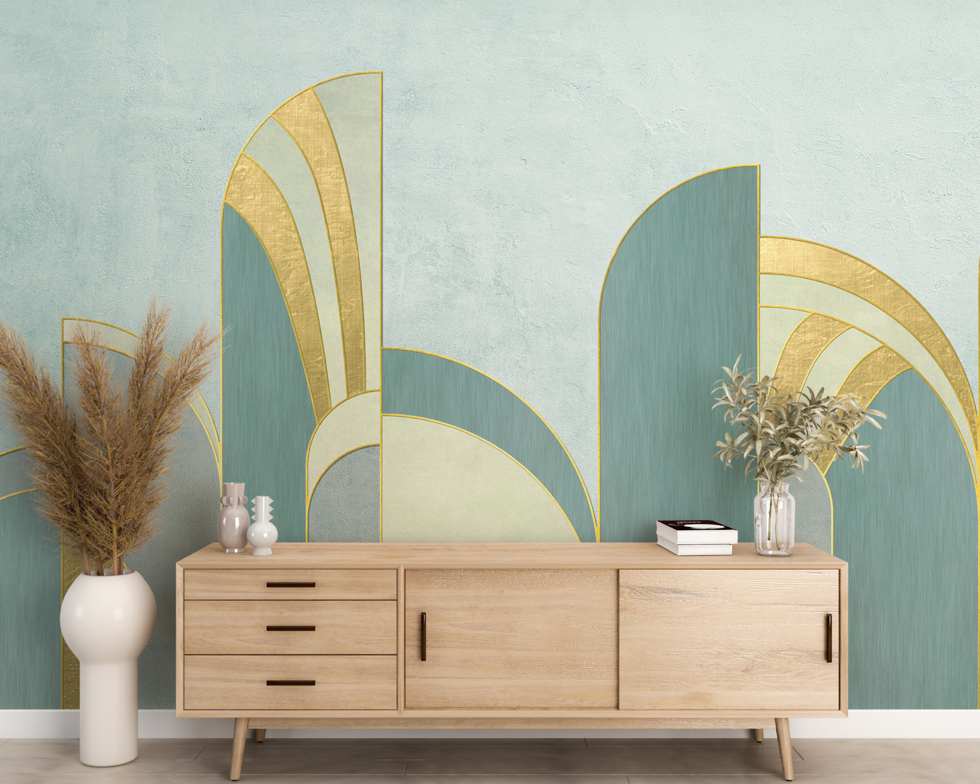 Geometryczne wzory od lat cieszą się popularnością w aranżacji wnętrz, dodając im charakteru i stylu. Błękitna kolorystyka tej fototapety sprawia, że pomieszczenie nabierze lekkości i świeżości.