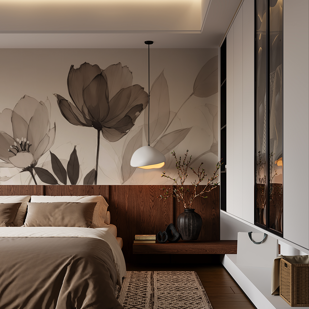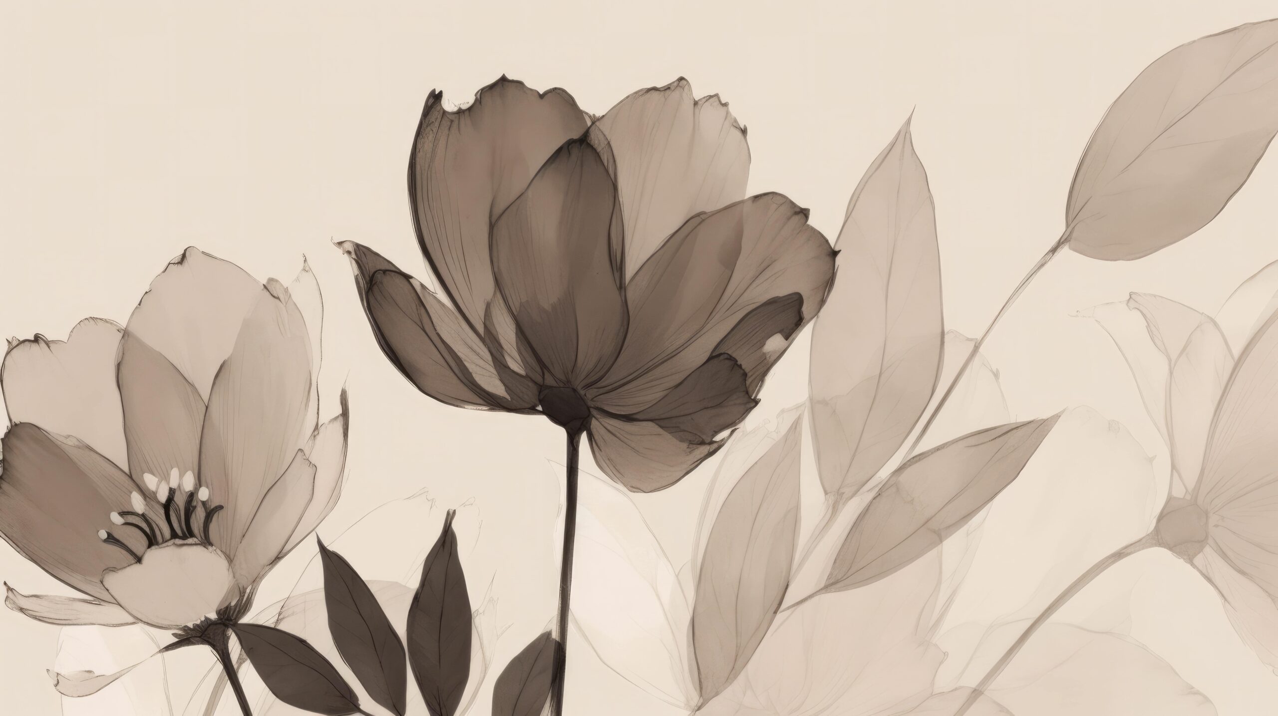 Wprowadź do swojego wnętrza kojący rytm natury dzięki fototapecie „Cisza Płatków”. Eteryczny motyw kwiatów, utrzymany w stonowanych, sepiowych tonacjach, tworzy wyjątkową kompozycję, która zachwyca lekkością i spokojem. Miękkie linie i przezroczyste warstwy przypominają akwarelowy szkic, nadając przestrzeni finezyjny, niemal poetycki charakter.