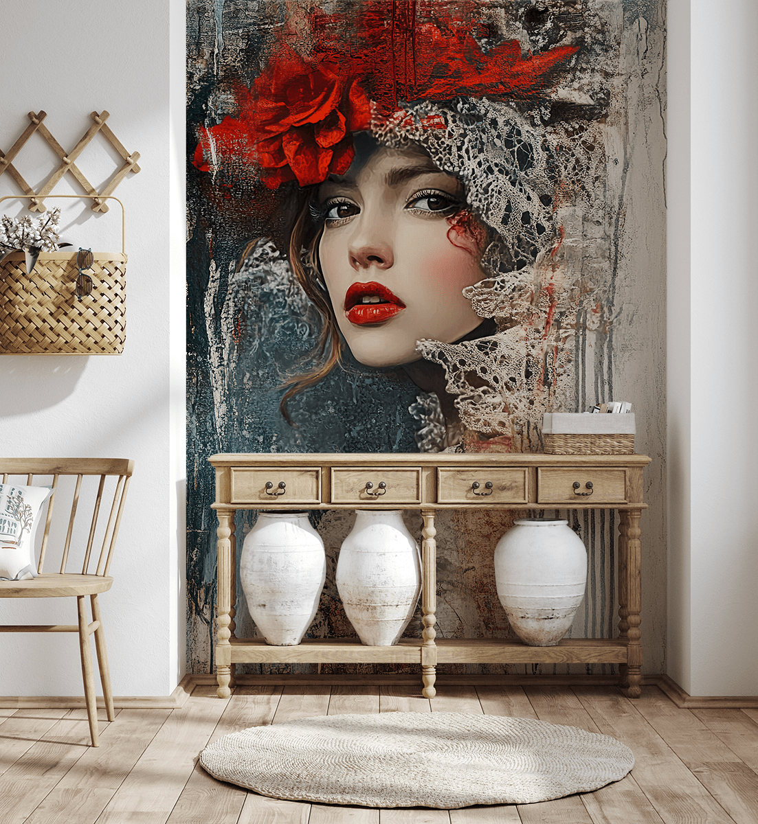 Wprowadź do swojego domu wyjątkowy klimat dzięki fototapecie „Czerwona Tajemnica”. Ta intrygująca kompozycja łączy intensywną czerwień kwiatu z delikatnością koronki i tajemniczym spojrzeniem, tworząc efekt pełen pasji i zmysłowości. Fototapeta wnosi do przestrzeni niepowtarzalny styl, łącząc artystyczną ekspresję z eleganckim minimalizmem.