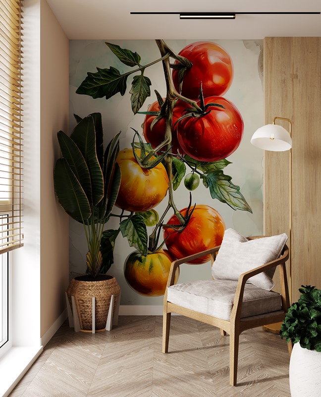 Wprowadź do swojego wnętrza niezwykły klimat dzięki fototapecie „Dojrzałe Pomidory na Gałęzi”. Ta wyjątkowa kompozycja dojrzałych pomidorów w różnych odcieniach czerwieni i pomarańczu, osadzona na delikatnej gałęzi z zielonymi liśćmi, przywołuje urok naturalnej finezji i świeżości. Subtelne detale oraz żywe barwy sprawiają, że fototapeta doskonale komponuje się zarówno z nowoczesnymi, jak i klasycznymi aranżacjami.