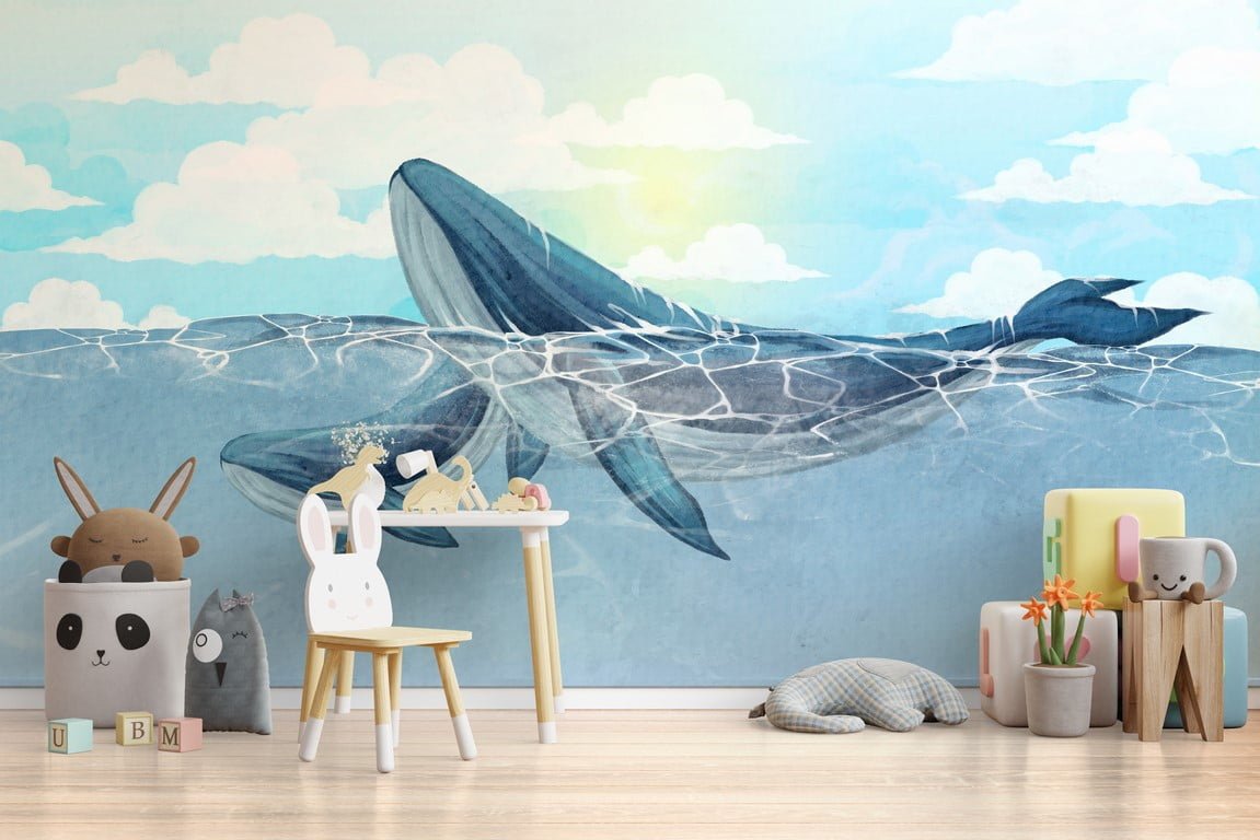 Zamów już dziś fototapetę z dwoma wielorybami i spraw, aby pokój Twojego dziecka stał się jeszcze bardziej przytulny i dziecięco kolorowy!