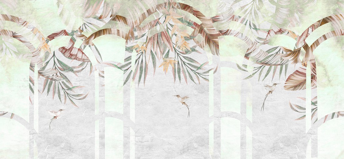 Fototapeta Egzotyczne Liście w Dekoracyjnych Łukach