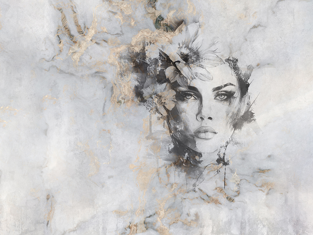 Ta unikatowa fototapeta przedstawia elegancką kobietę na tle marmurowej ściany, co nadaje wnętrzu wyjątkowego charakteru i luksusowego wyglądu. Dzięki wysokiej jakości druku oraz starannemu wykonaniu, obraz wydaje się niemalże realistyczny, co sprawia, że pomieszczenie nabiera głębi i oryginalności.