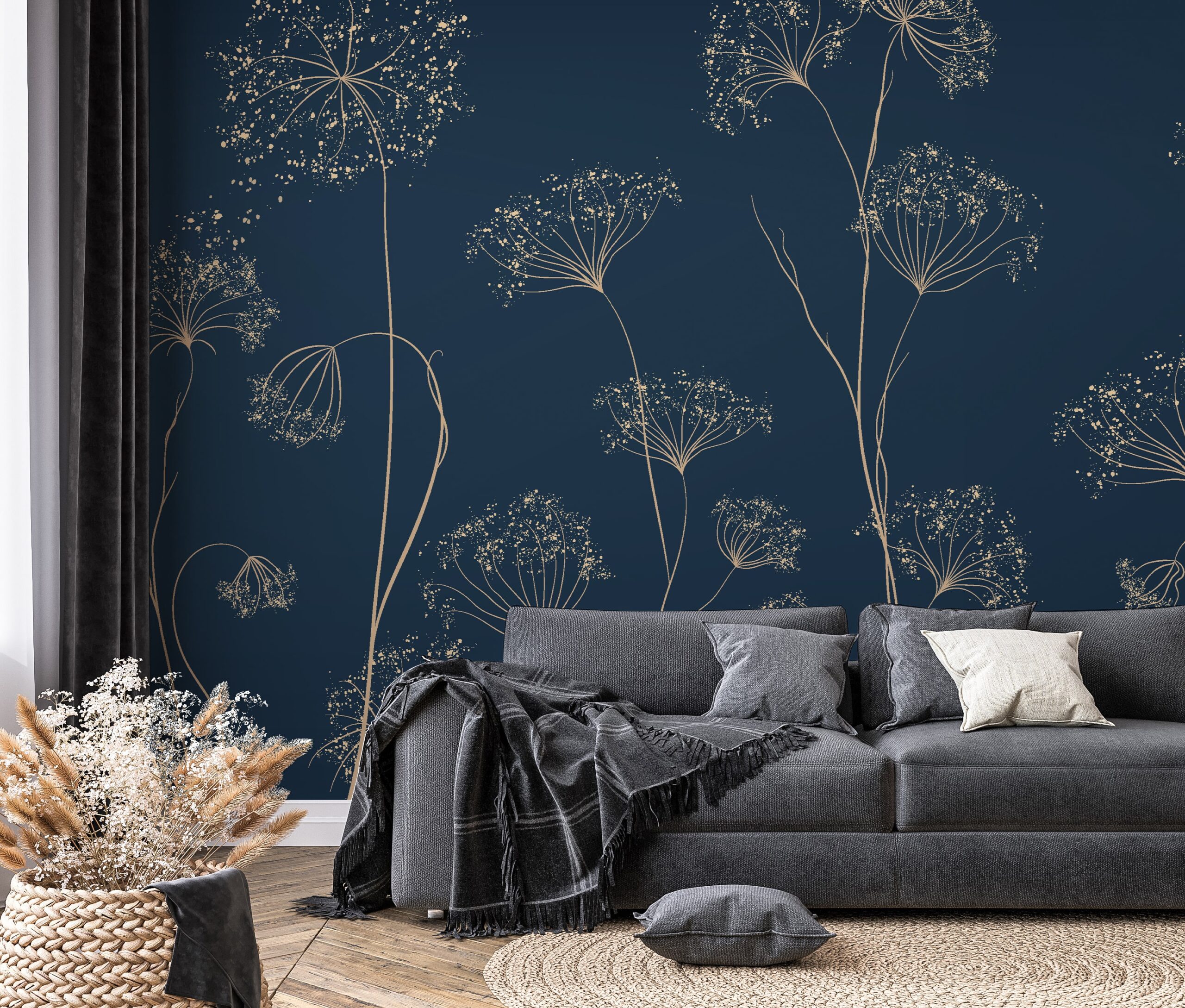 Wprowadź do swojego domu wyjątkowy klimat dzięki fototapecie „Kwiatowa Noc”. Ten delikatny, kwiatowy wzór na głębokim, nocnym tle doda przestrzeni niepowtarzalnej elegancji. Misternie zaprojektowane roślinne motywy przywołują spokojną atmosferę, tworząc wrażenie tajemniczej wiatru, który przesuwa się przez kwiaty.