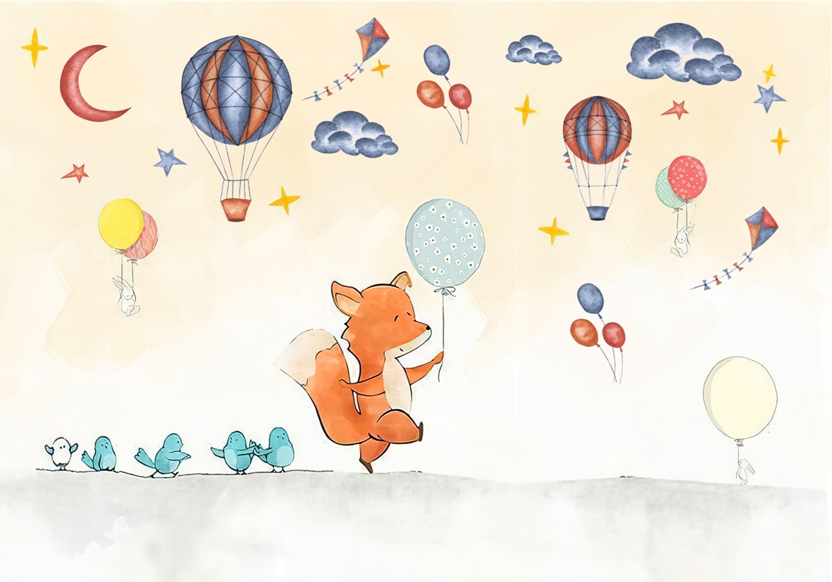 Przykuwająca wzrok fototapeta przedstawiająca uroczego liska trzymającego kolorowy balonik. Ten uroczy motyw z pewnością będzie doskonałym dodatkiem do każdego pokoju dziecięcego, pokoju zabaw lub przedszkola. Fototapeta wykonana jest z wysokiej jakości materiałów, co gwarantuje nie tylko piękny wygląd, ale także trwałość i łatwość montażu.