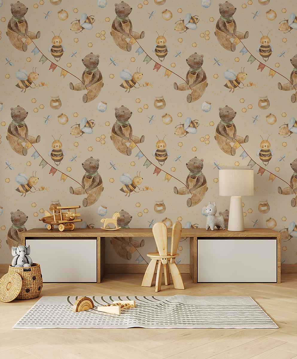 To doskonały wybór do pokoju dziecięcego, przedszkola czy kącika zabaw – wszędzie tam, gdzie liczy się przytulność, kreatywność i uśmiech dziecka. Wzór pobudza wyobraźnię i zachęca do wymyślania własnych historii o misiowych przygodach i miodowych wyprawach.