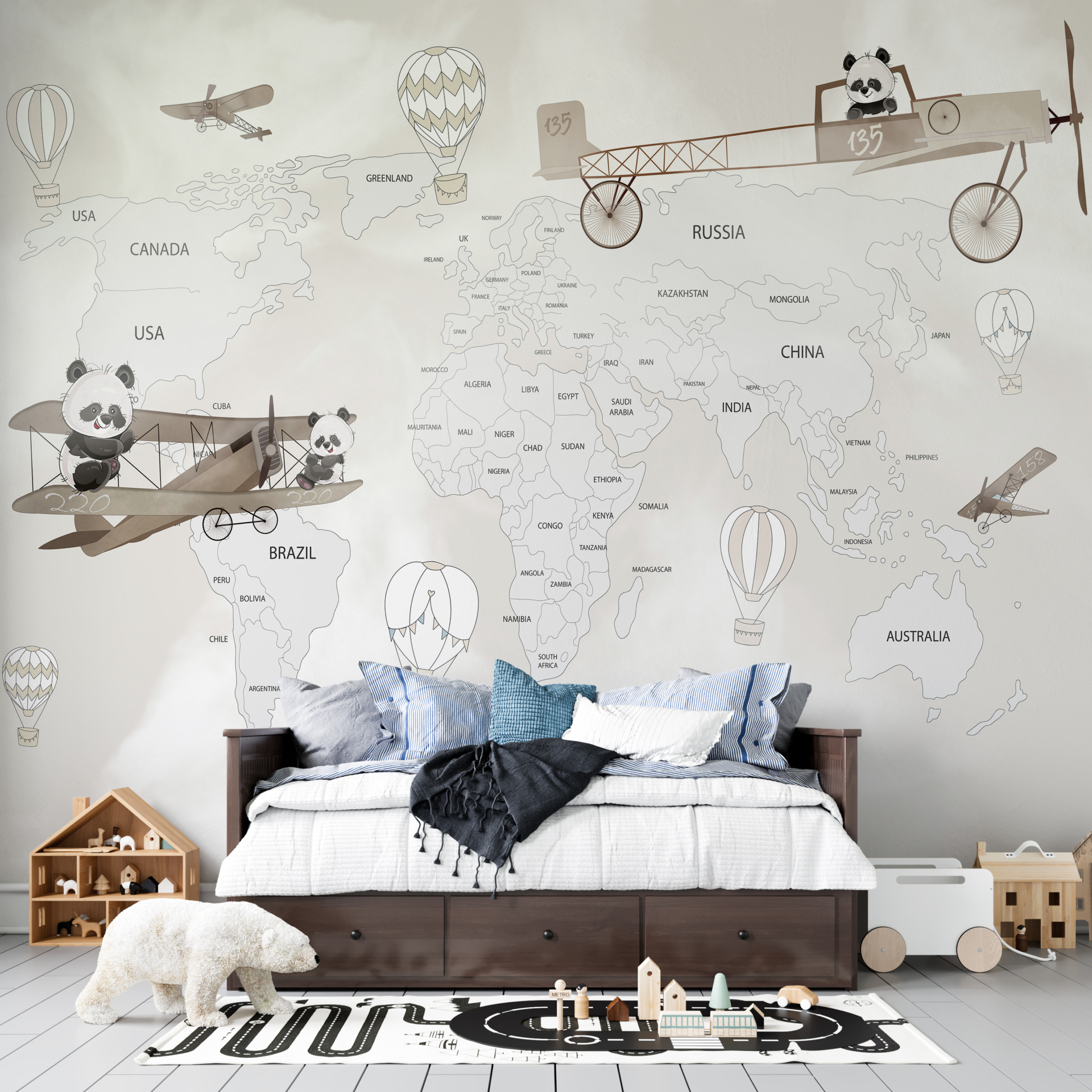 Zamów już dziś fototapetę z pandą na mapie świata i odmień swoje wnętrze w wyjątkowy sposób!