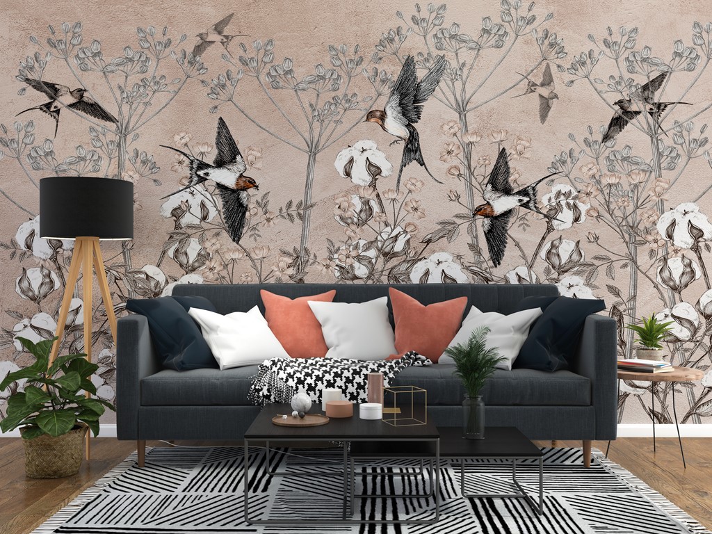 Zapewnij swojemu wnętrzu oryginalny i świeży wygląd dzięki Fototapecie Ptaki w Kwiatach Bawełny!