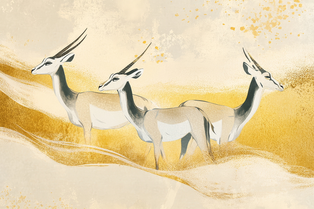 Fototapeta „Spokój pustyni” to minimalistyczna dekoracja ścienna, która wnosi do wnętrza aurę ciszy, harmonii i przestrzeni. Kompozycja inspirowana pustynnymi pejzażami — piaski, delikatne pagórki i antylopy w centrum grafiki— tworzy atmosferę wyciszenia i naturalnej elegancji. Idealna do salonu, sypialni, gabinetu czy kącika relaksacyjnego – wprowadza poczucie spokojnego oddechu, optycznego powiększenia przestrzeni i subtelnego luksusu. Fototapeta „Spokój pustyni” to propozycja dla osób ceniących minimalistyczny styl, estetykę natury i wnętrza sprzyjające wyciszeniu oraz refleksji.