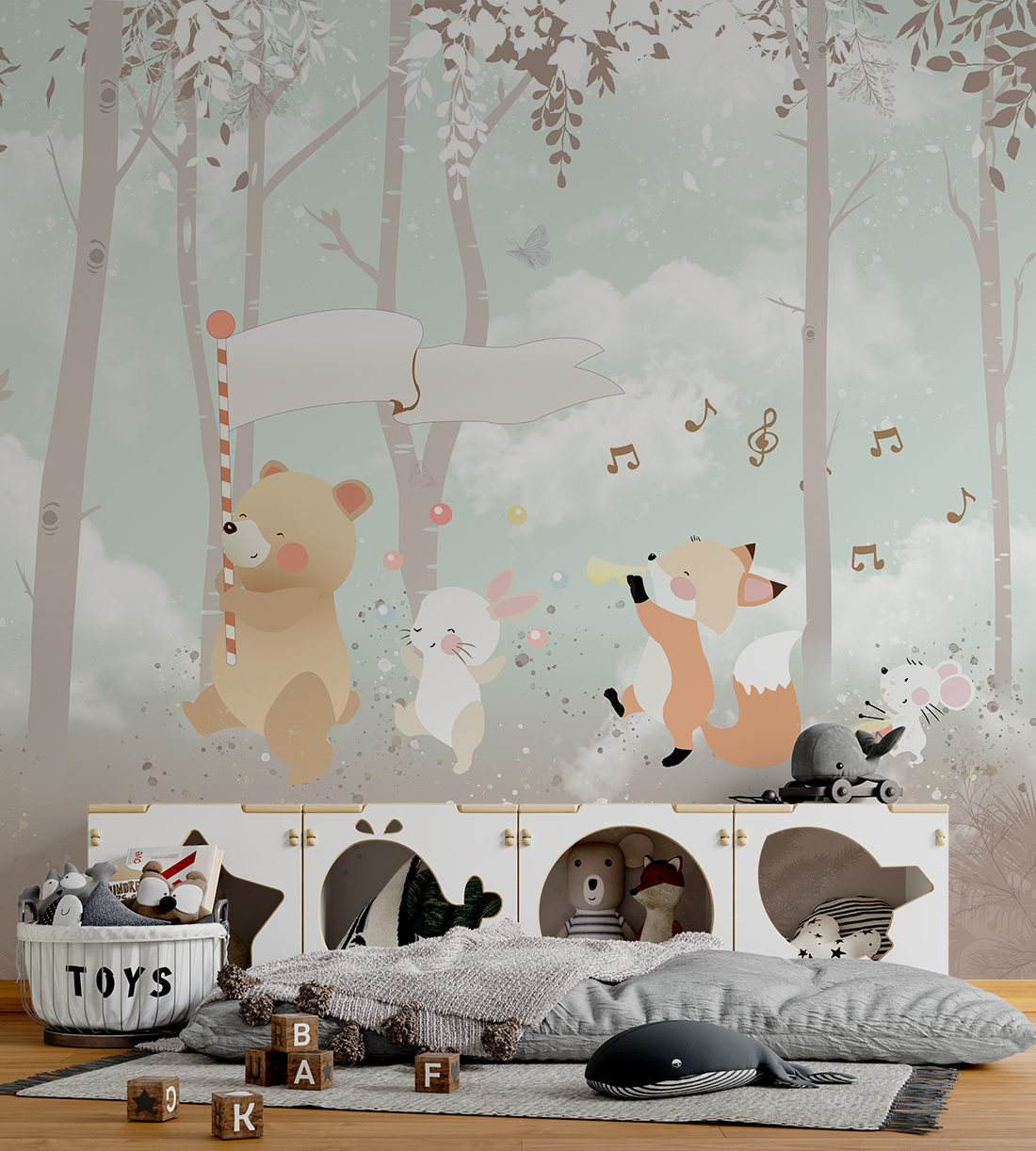 **Fototapeta Zwierzątka Muzykanci – Radosna Dekoracja do Pokoju Dziecka**
