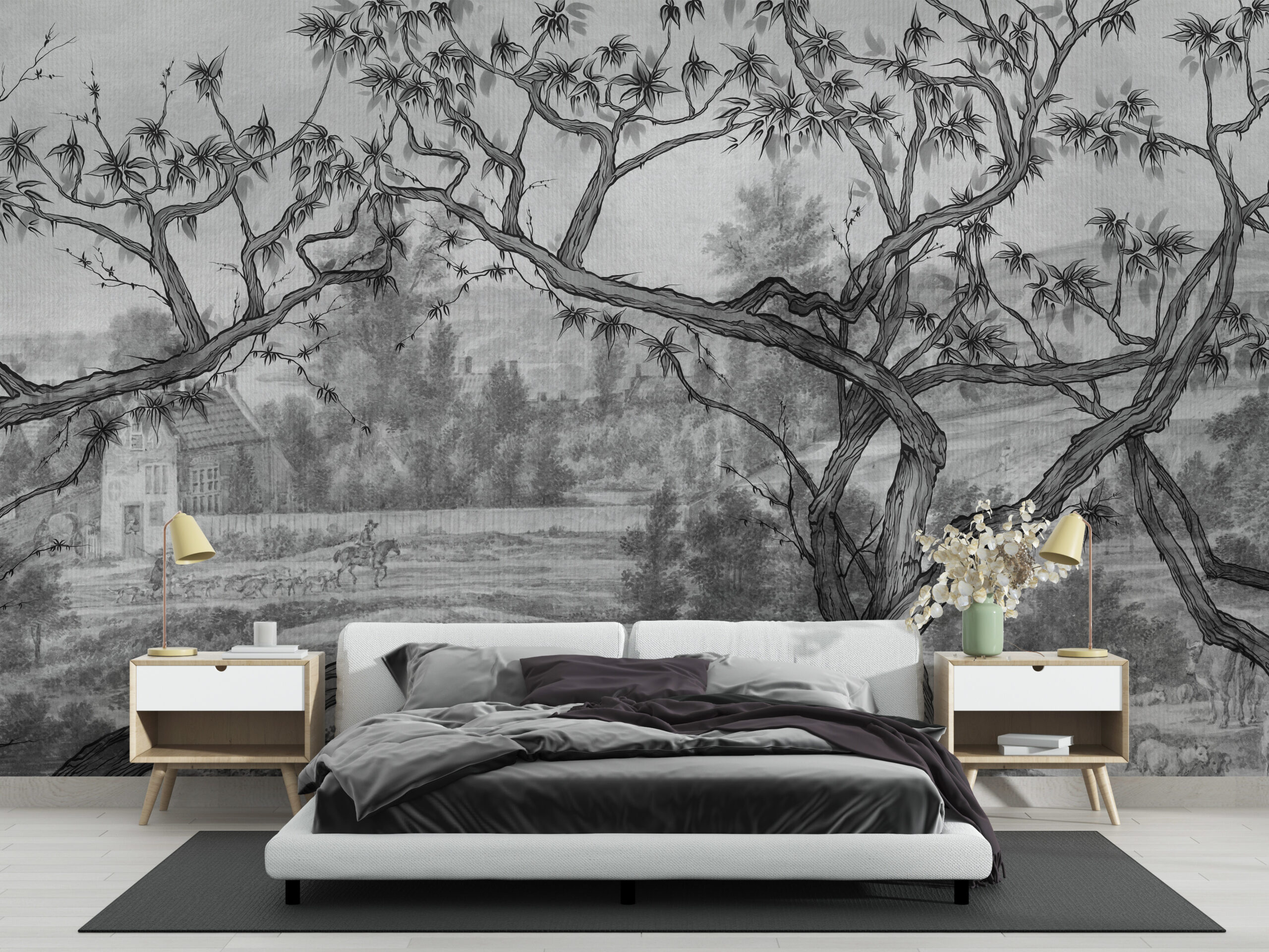 Fototapeta Wiejski Krajobraz Czarno Biała