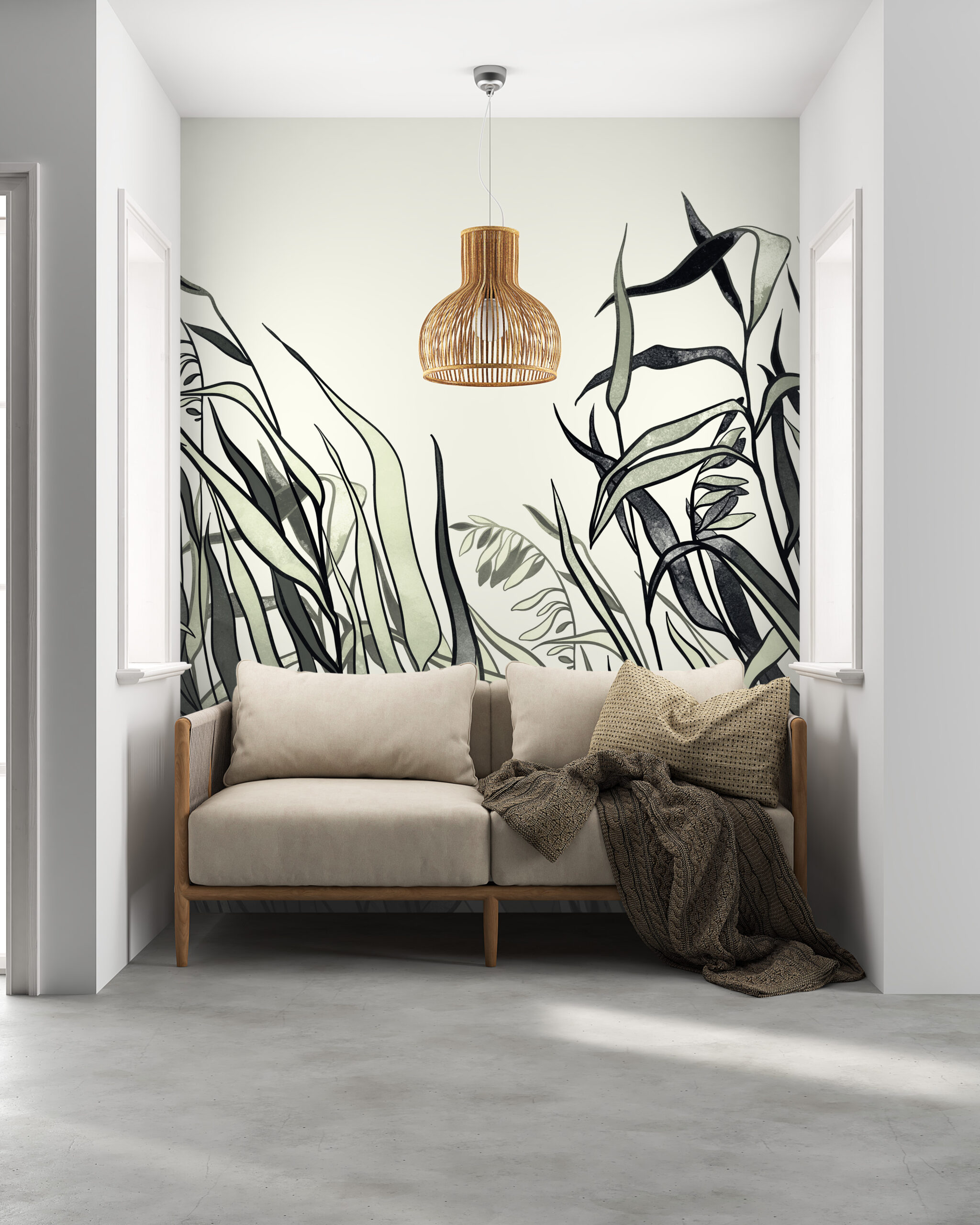 Fototapete Dunkle Blätter auf hellem Hintergrund